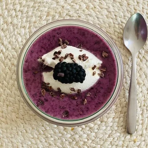 Vor dem Geniessen einen Klacks griechisches Yoghurt oder Schlagrahm oben drauf und mit knackigen Kakao Nibs bestreuen.
