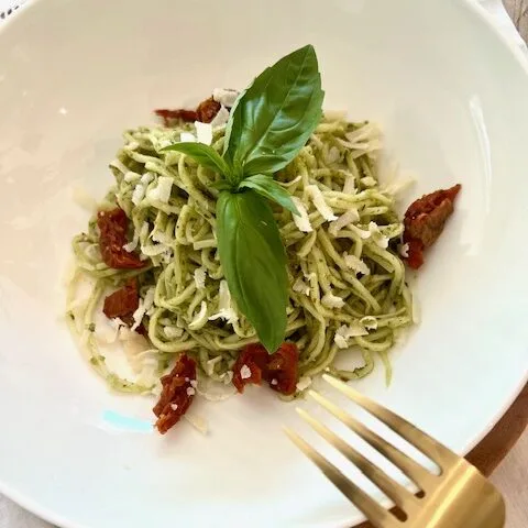 Es gibt nichts herrlicheres als Pasta mit einer leckeren Sauce. Zu unseren Favourites gehört natürlich die Pestosauce und mit Kürbiskernen ist diese auch noch super ketotauglich! Das Rezept funktioniert vegan wie auch mit Käse.