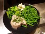 Ein typisches Keto-Abendessen ist Fleisch/Fisch mit Gemüse (dazu grosszügig Olivenöl oder Butter). In diesem Fall Tuna Steak mit Meerrettich-Frischkäse, dazu grüne Bohnen und Pak Choi.