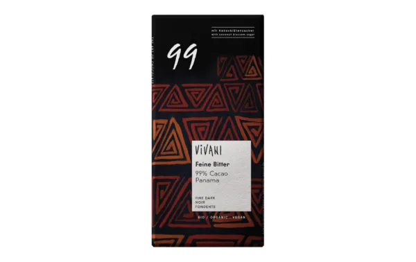 - Zutaten: Kakaomasse*°, Kakaobutter*°, Kokosblütenzucker*0.5%, Kakao: 99 % mindestens.